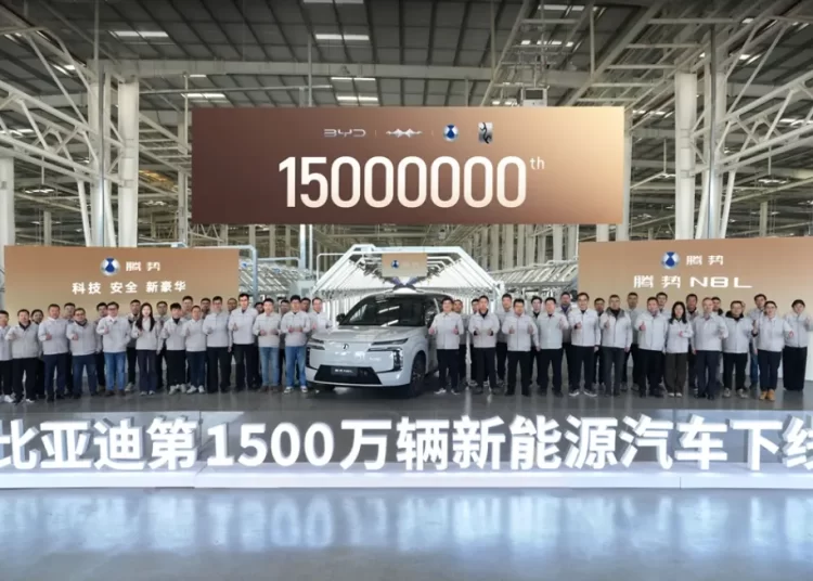历史性时刻!比亚迪第1500万辆新能源车下线,腾势N8L第15000台成里程碑车型