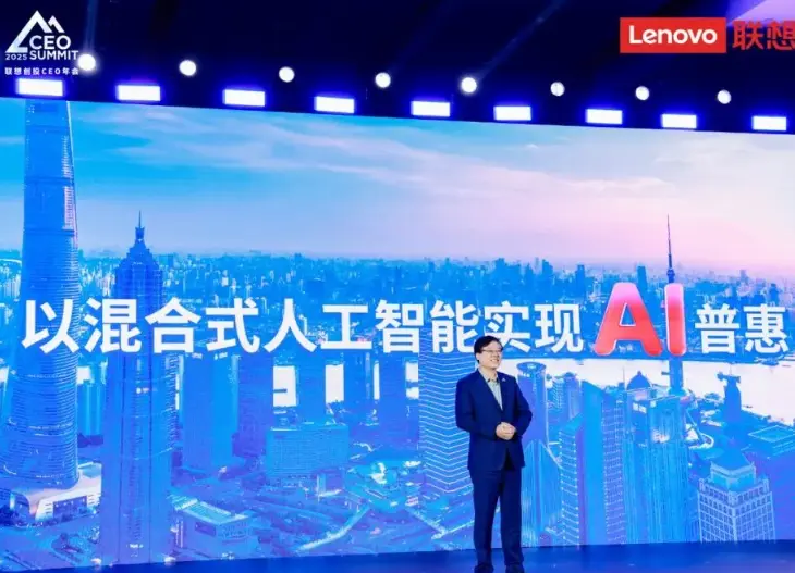 以“硅基潮涌、创新世界”为主题的2025联想创投CEO年会11月8日在上海举办。联想集团董事长兼CEO杨元庆在8日的大会开幕式上发表题为《以混合式人工智能实现AI普惠》的主旨演讲,分享对AI发展趋势的判断并阐释联想混合式AI战略未来的发力方向。
