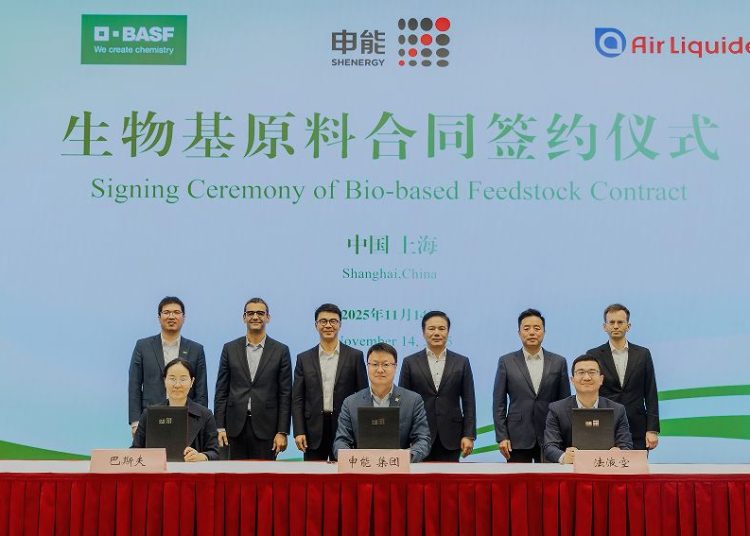 巴斯夫与液化空气集团(以下简称“液空”)旗下子公司上海化学工业区工业气体有限公司(SCIPIG)、申能集团旗下子公司上海申汲能源环境科技有限公司(以下简称“申汲”)签署一项多年期合作协议。该合作旨在利用生物天然气,共同推动低碳足迹二苯基甲烷二异氰酸酯(MDI)的生产。