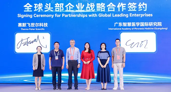 赛默飞作为CNHUPO的重要合作伙伴,赛默飞此前已参与支持多项本土蛋白质组学研究,依托蛋白质组学核心技术与解决方案,为高精度蛋白质研究提供关键支撑。如今,为助力π-HuB这一全球科学工程落地,在10月13日举办的第一届π-HuB产业大会现场,赛默飞正式与π-HuB全球执行总部——广东智慧医学国际研究院签署战略合作协议,让技术实力与全球科研使命精准对接。