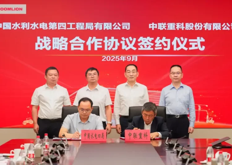 中聯重科與中國水利水電**四工程局有限公司(以下簡稱中國水電四局)在長沙市簽訂戰略合作協議。中聯重科黨委書記、董事長、CEO詹純新與中國水電四局黨委書記、董事長龐旭出席儀式見證簽約,雙方就進一步深化戰略合作進行座談交流。